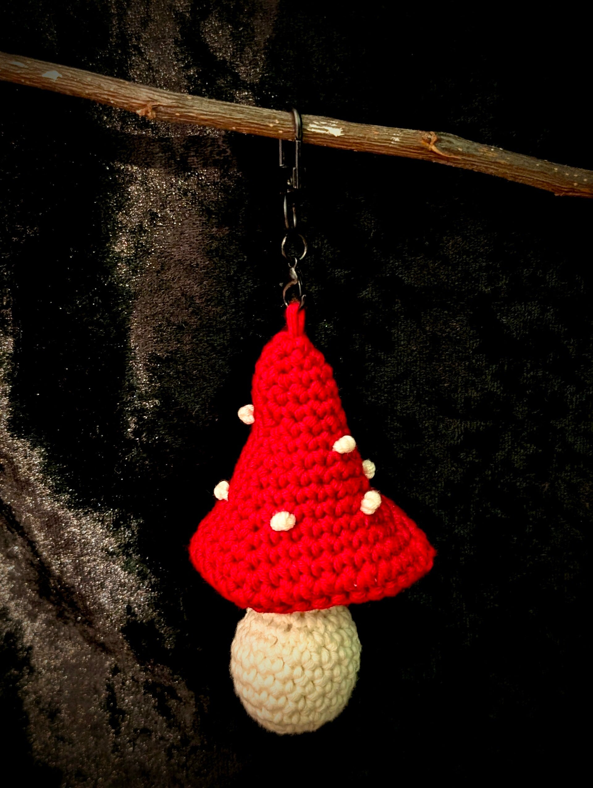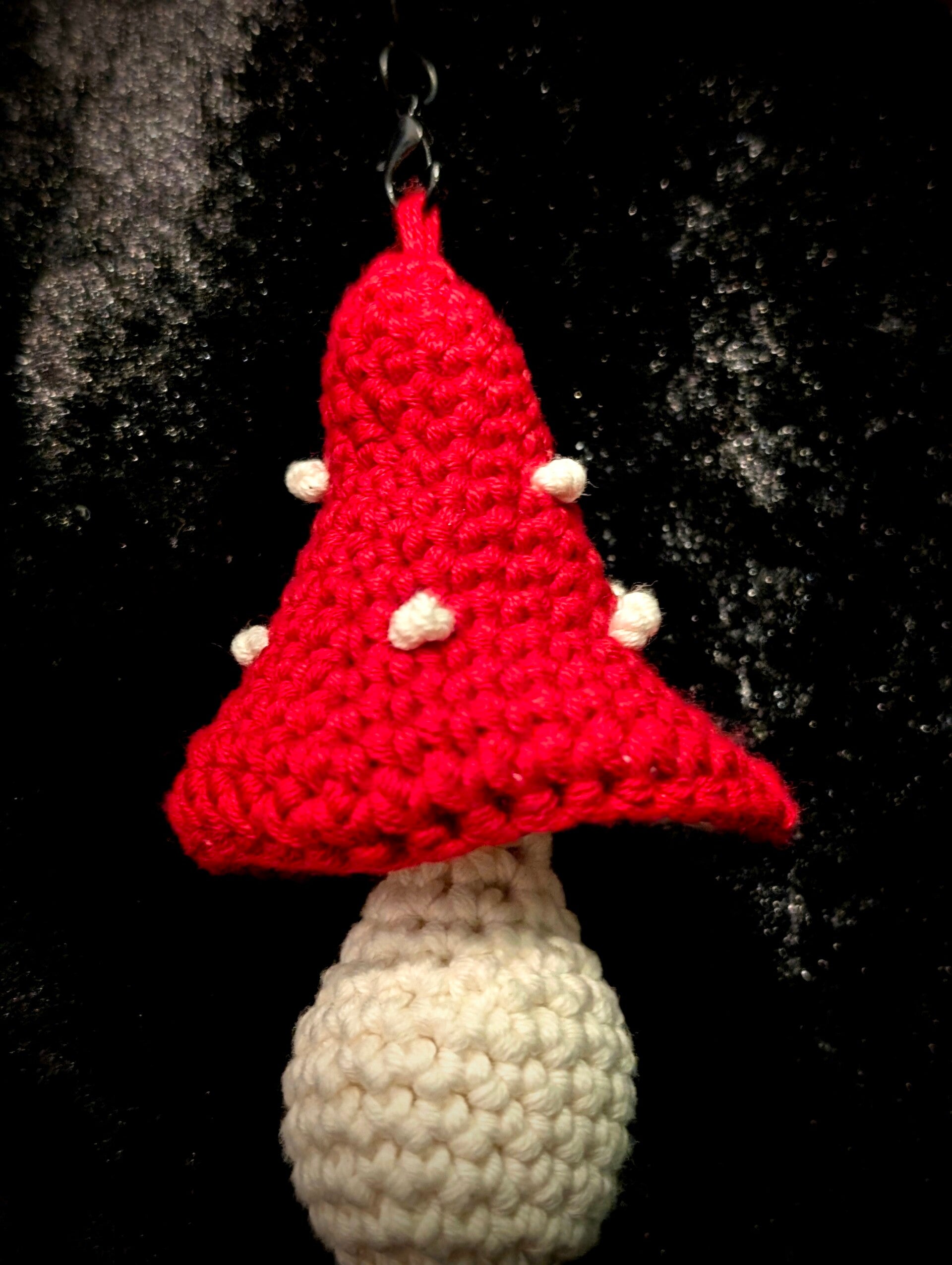 Süßer gehäkelter Pilzanhänger für Taschen, Rucksack Schlüsselbund oder ein Kostüm. Auch als Glücksbringer eine tolle Geschenkidee .Es handelt sich um einen in Handarbeit gehäkelten Pilz aus Wolle.